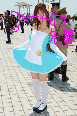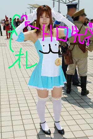 そんで、無料配布のうちわとかを回収つつ企業ブースを回り(なのはのグッズなんかも欲しかったんですが、ヒトがあまりにも多かったため断念orz 腐女子広場に腐女子はいませんでした。)、コスプレ広場へGO!